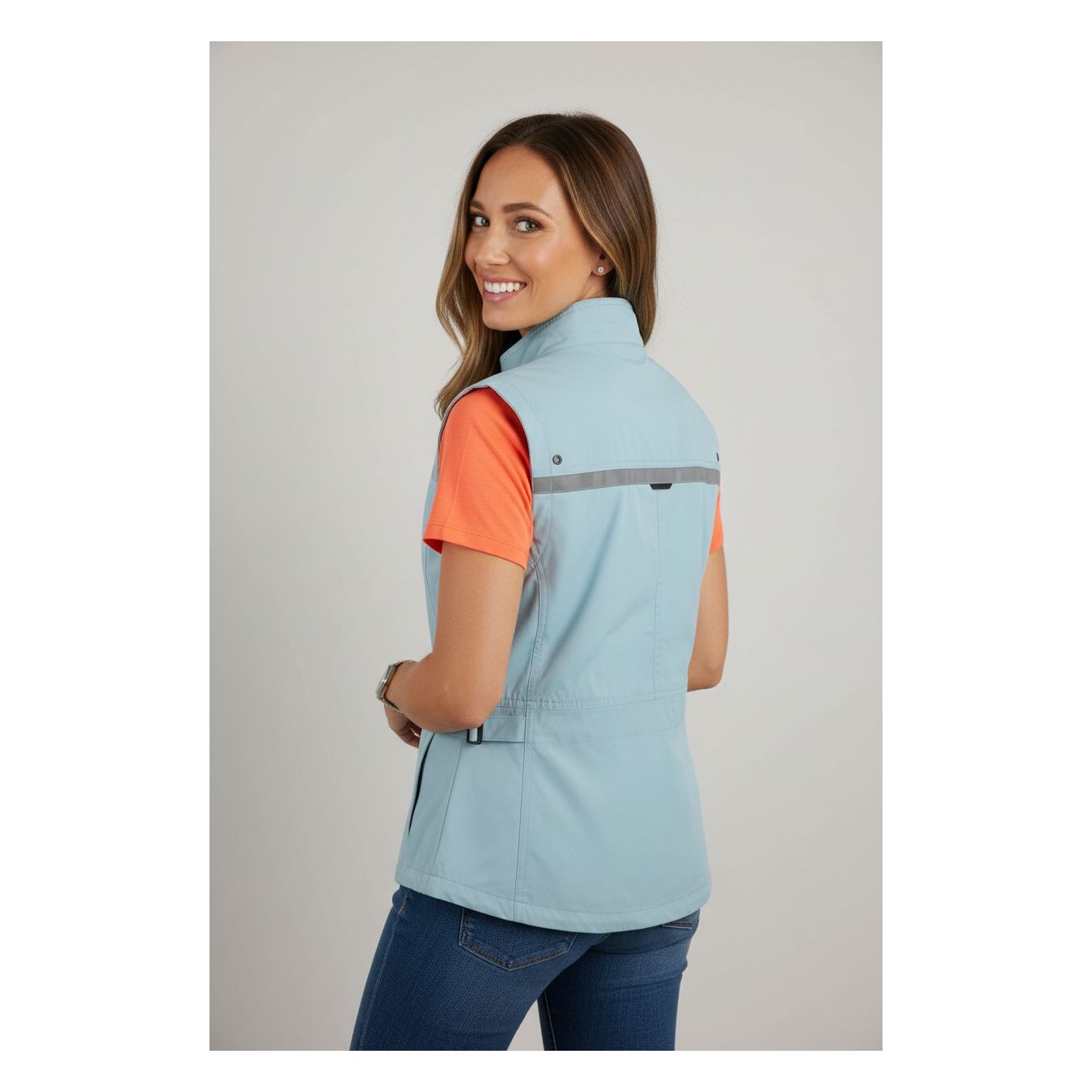 Damenweste aus weichem, leichtem Stoff, ideal für warme Jahreszeiten für einfache Spaziergänge, dank ihrer 4 Taschen ist es möglich, Schlüssel, Mobiltelefone und Geldbörsen ohne Stress zu tragen.