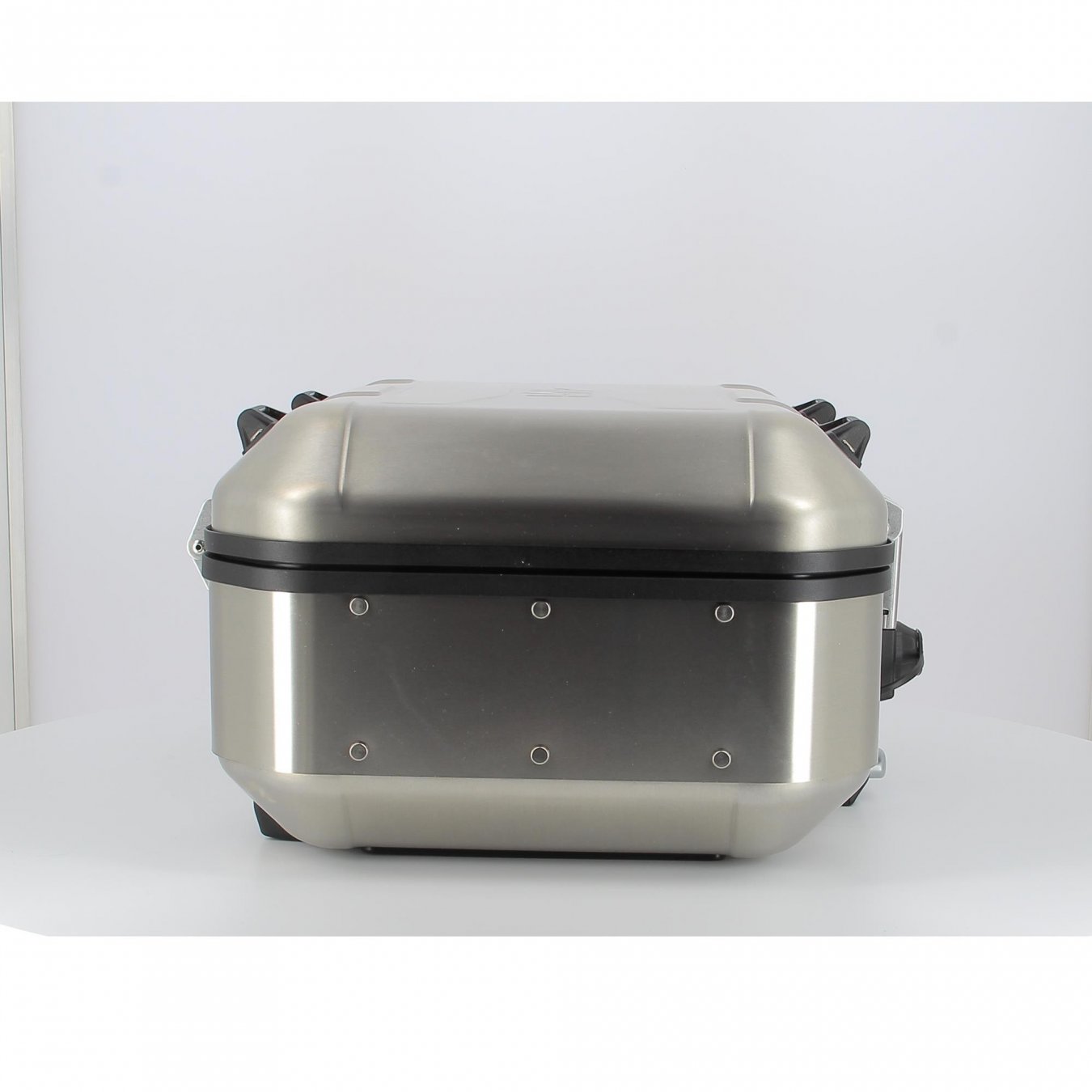 Monokey Trekker Dolomiti Koffer aus Aluminium natur, 30 lt. Kann sowohl als Topcase (kompatibel mit allen Monokey-Platten) als auch als Seitencase (kompatibel mit Seitenrahmen PL_ _ _ und PLR_ _ _) verwendet werden.