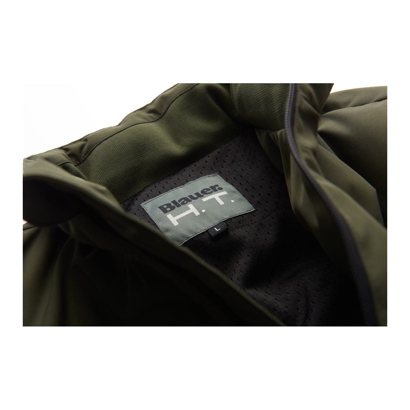 Bomber jacket cut made with water-repellent nylon double-layer outer fabric and Dupont Sorona ecological padding. Prepared for elbow and shoulder (included) and back (not included) protections. Front opening with coated zip and self-locking slider. Ribbed cuffs and bottom. Two front pockets with taped zip closure and self-locking slider. Internal document pocket.