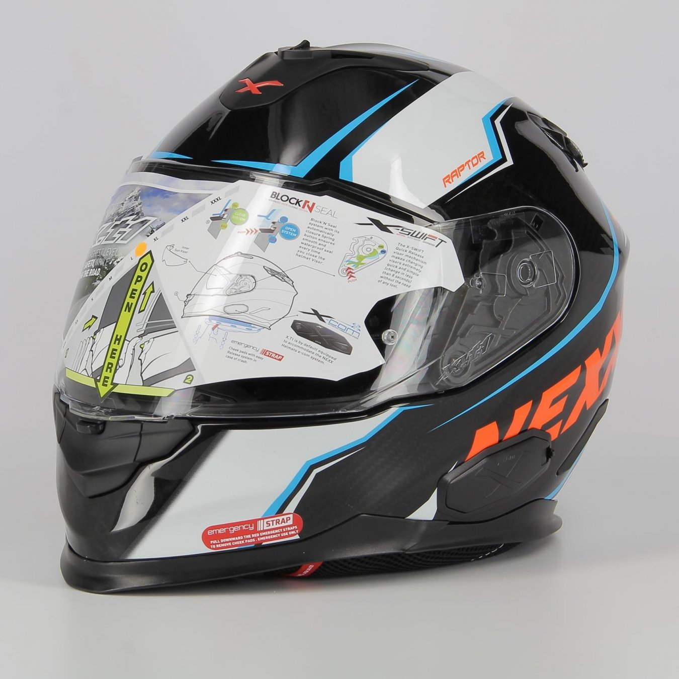- Lexan PC shield with new Block'N' sealing system (with double resistance visor) and X-SWIFTQuick unlock system