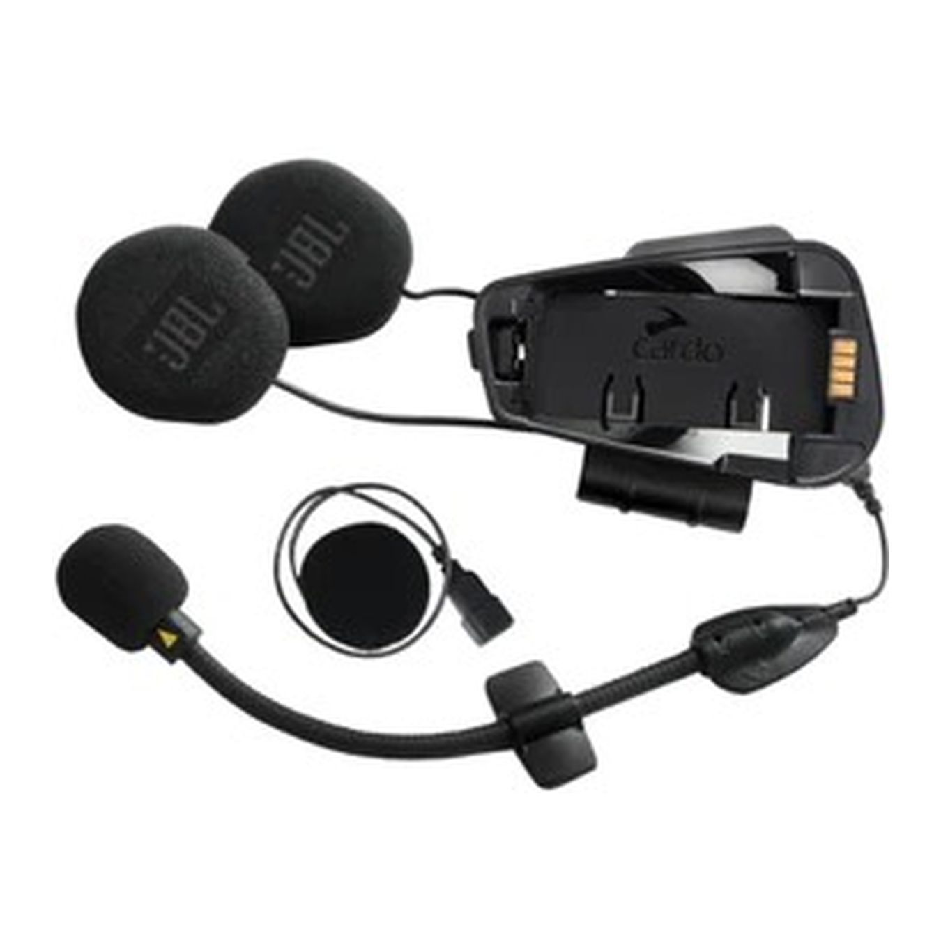 kit audio completo di auricolari JBL HD 40mm, microfoni e basetta con contatti per la centralina.