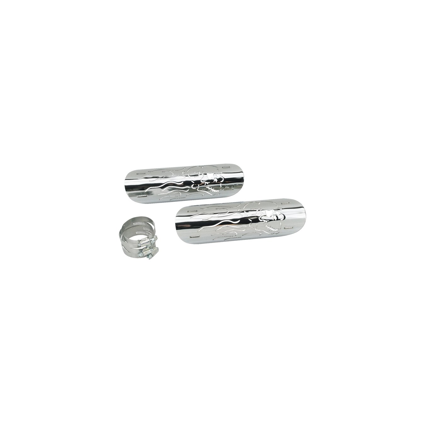 Description Chromed exhaust heat shield Flaming Skull