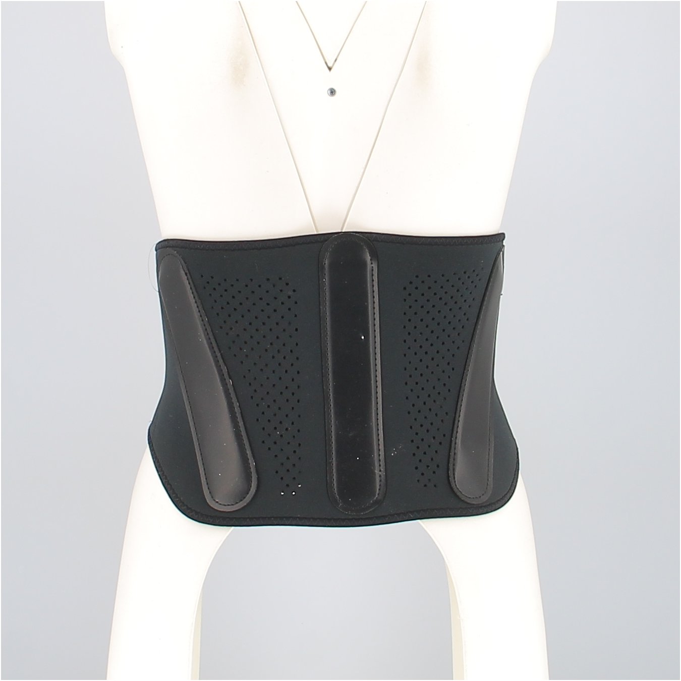 Neoprene lumbar band with 3 semi-rigid splints and velcro at the waist.