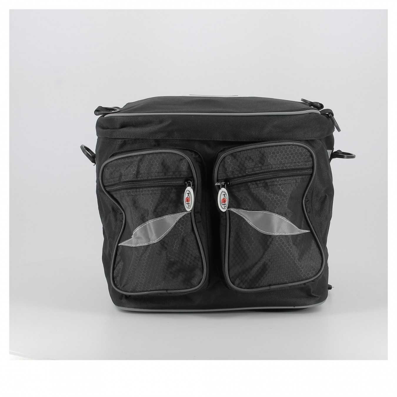 T-Maxter Rear, soft rear trunk Made of cordura, load capacity 28 Lt. Double rear pocket with zippers and side bands with high visibility. Package includes: nylon rain hood and shoulder strap for carrying on the shoulder.- Brand