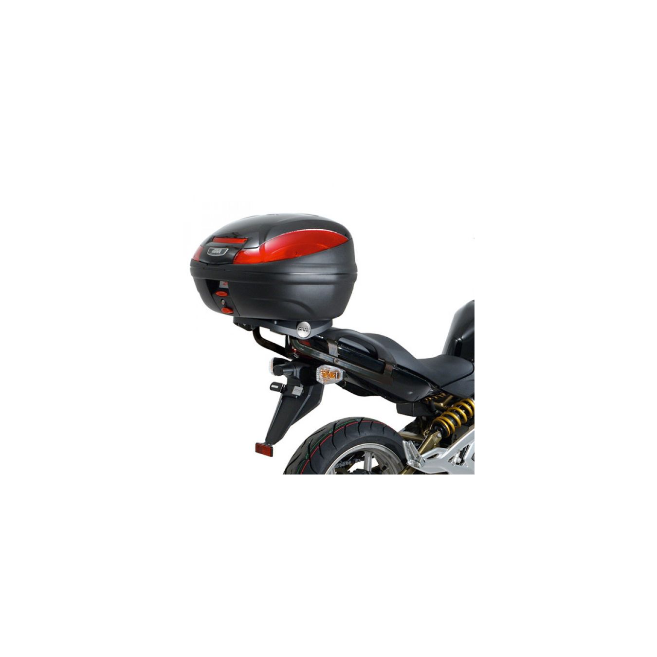 Attacco posteriore specifico per bauletti Givi e Kappa MONOKEY® o MONOLOCK® da abbinare alla piastra MONOKEY® M5, M7, M8A, M8B, M9A o M9B o alla MONOLOCK® M5M o M6M, o al portaborse in alluminio EX2M.