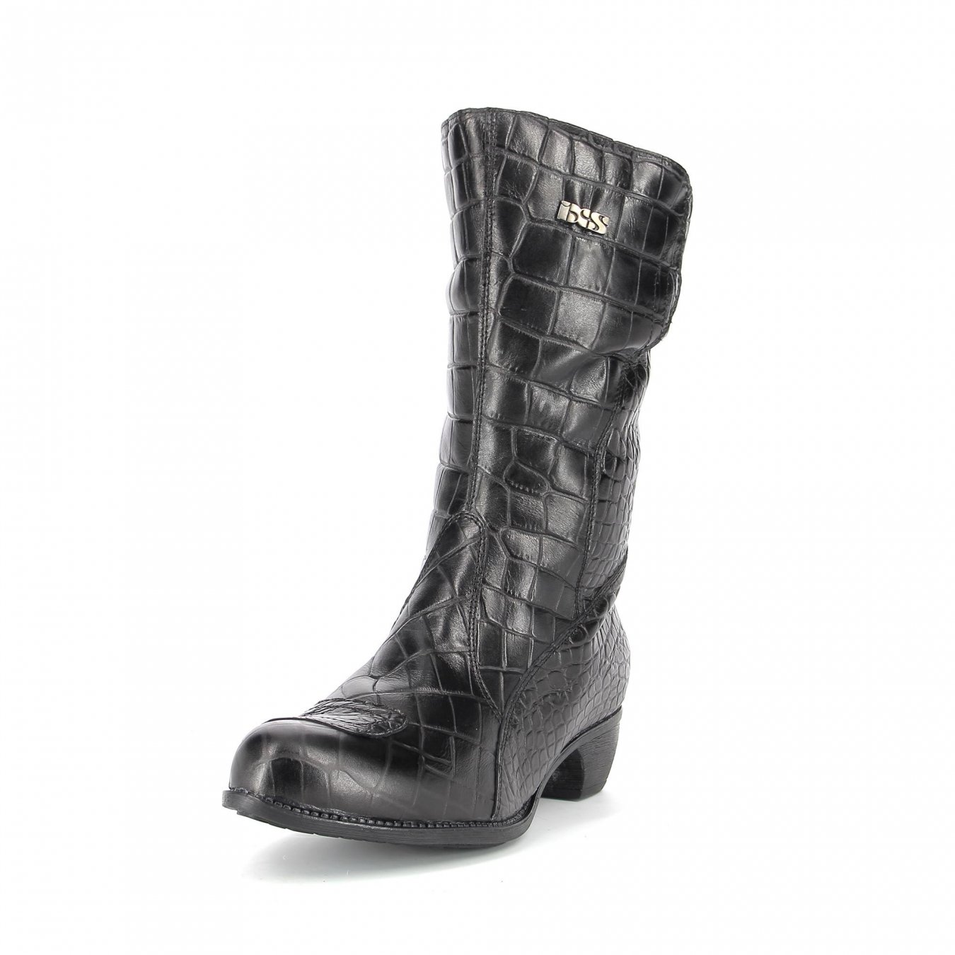 Bota impermeable de piel de vacuno estampada de cocodrilo para mujeres de altura mediaForro de tela