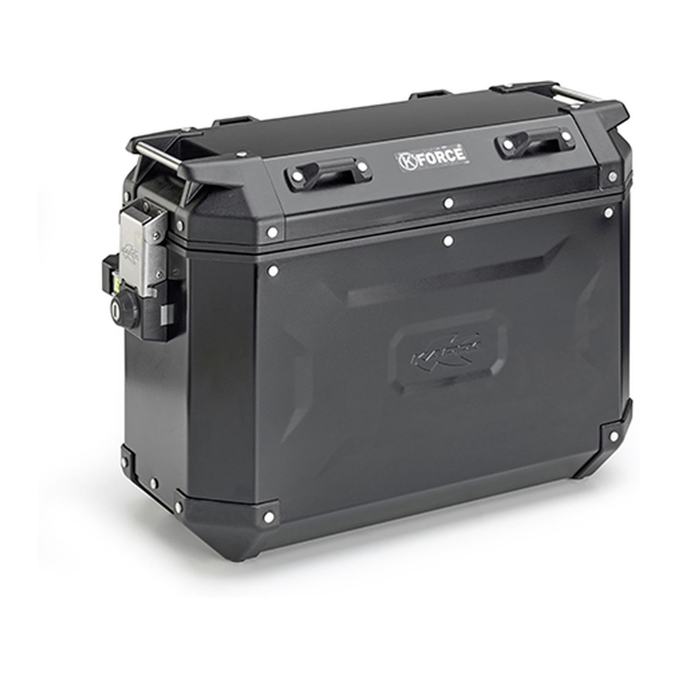 Caja lateral K'FORCE en aluminio natural, en dos litros diferentes 37 lt y 48 lt, también disponible en versión negra. Sistema de acoplamiento: MONOKEY® CAM SIDE.