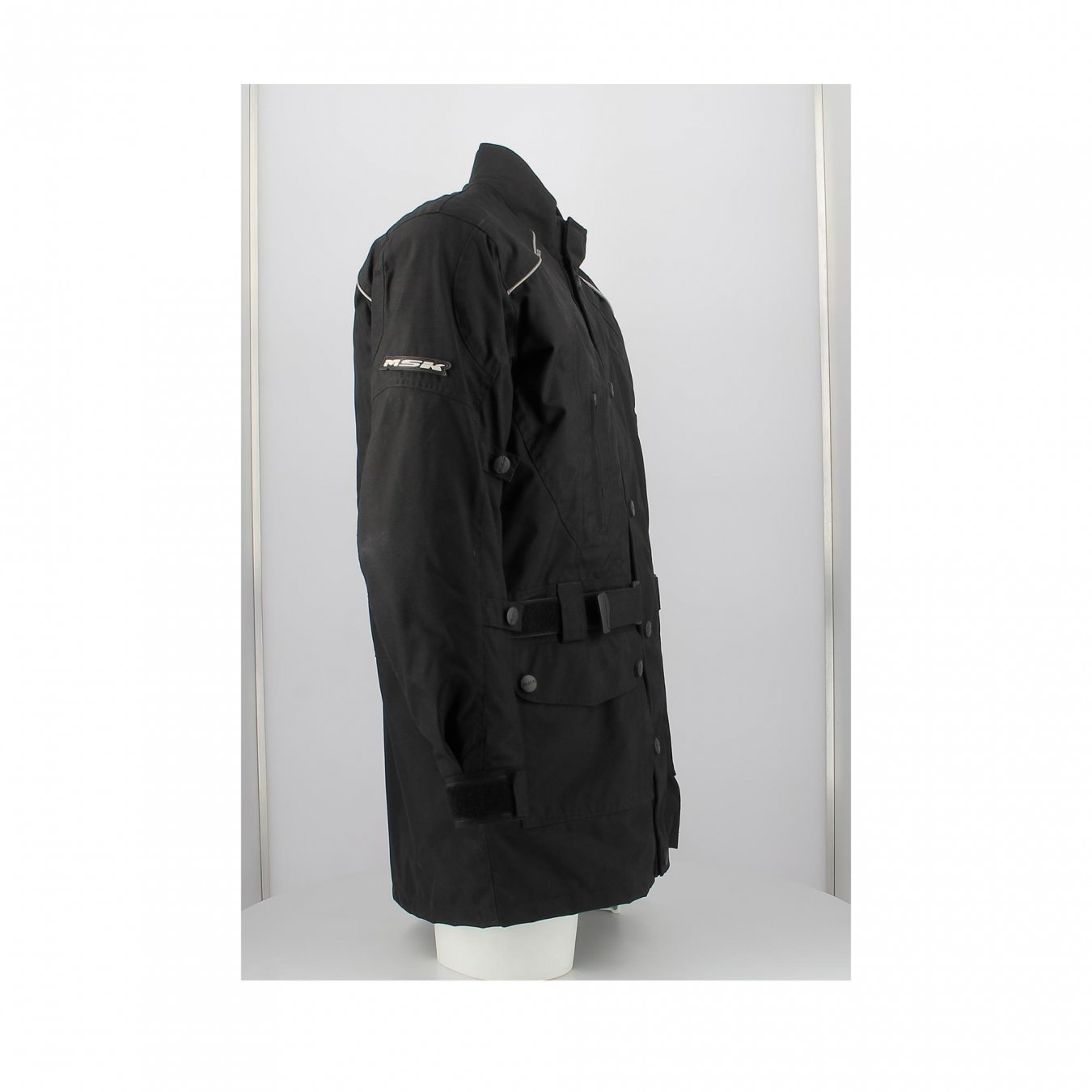 Chaqueta Cordura 100% transpirable 3/4 impermeable Corte largo, ideal para cubrir la chaqueta del vestido Ajustes de cintura por Velcro Bolsillos externos e internos Interior acolchado con funda extraíble Protecciones extraíbles aprobadas por CE en hombros, codos y espalda- Marca