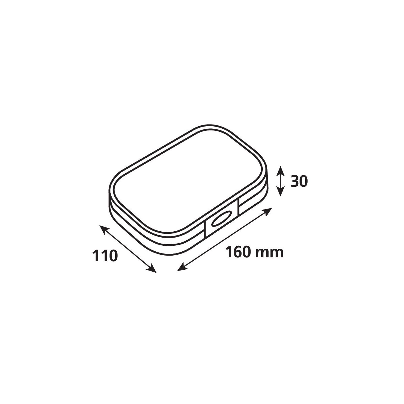 Cierre de bisagra y orificio de entrada de cable para fuente de alimentación.