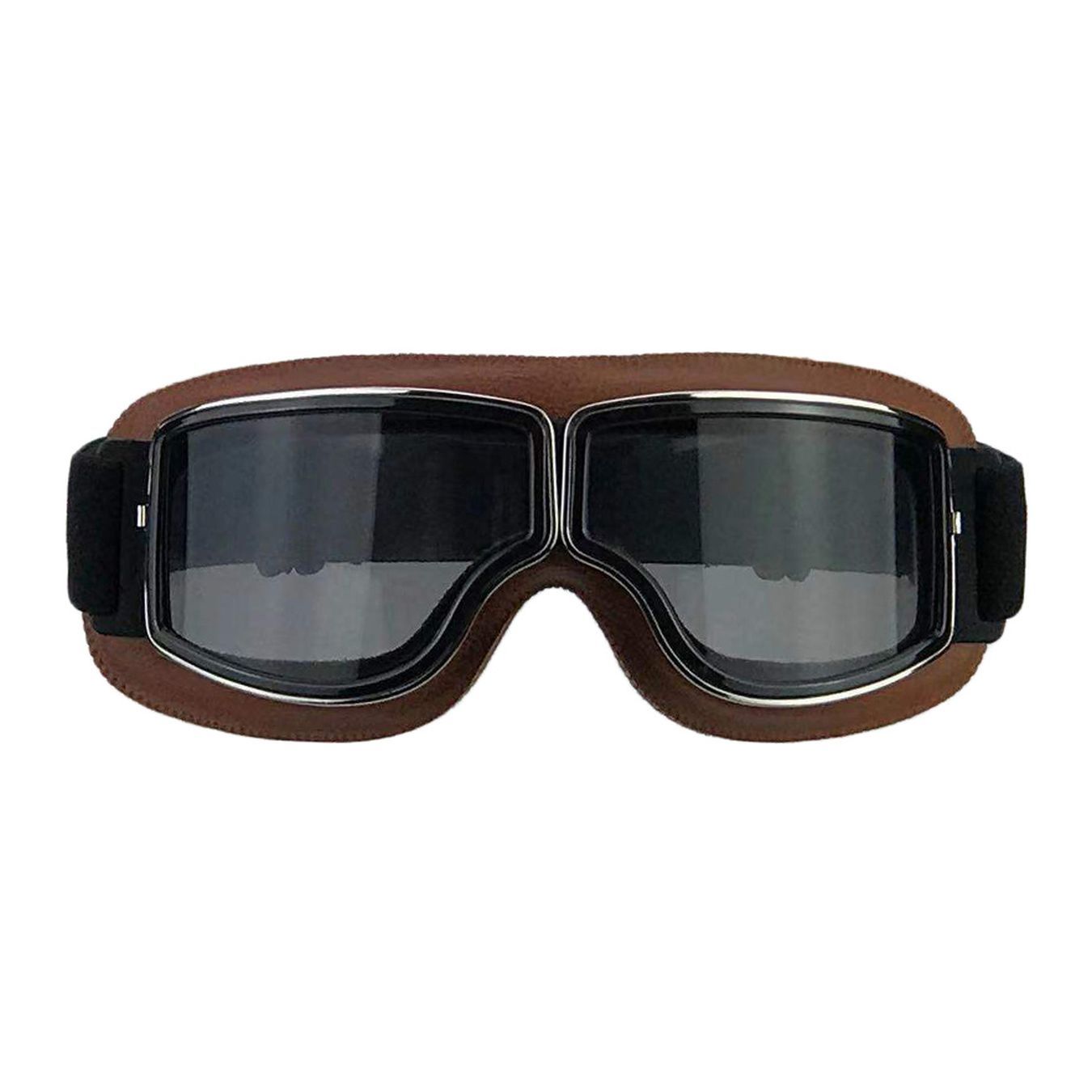 Gafas para motociclistas certificadas según la norma europea EN 1938:2010 "Protección individual de los ojos - Gafas de visera para usuarios de motocicletas y ciclomotores" Marco articulado negro para una mayor flexibilidad y una mejor adherencia al rostro. Acolchado interior suave, cubierto de cuero ecológico negro o marrón, antialérgico para una máxima sujeción y comodidad. Lentes oculares anchas para una mayor visibilidad. Lentes transparentes, ahumadas o espejadas resistentes a los arañazos. Correa con sistema de ajuste.
