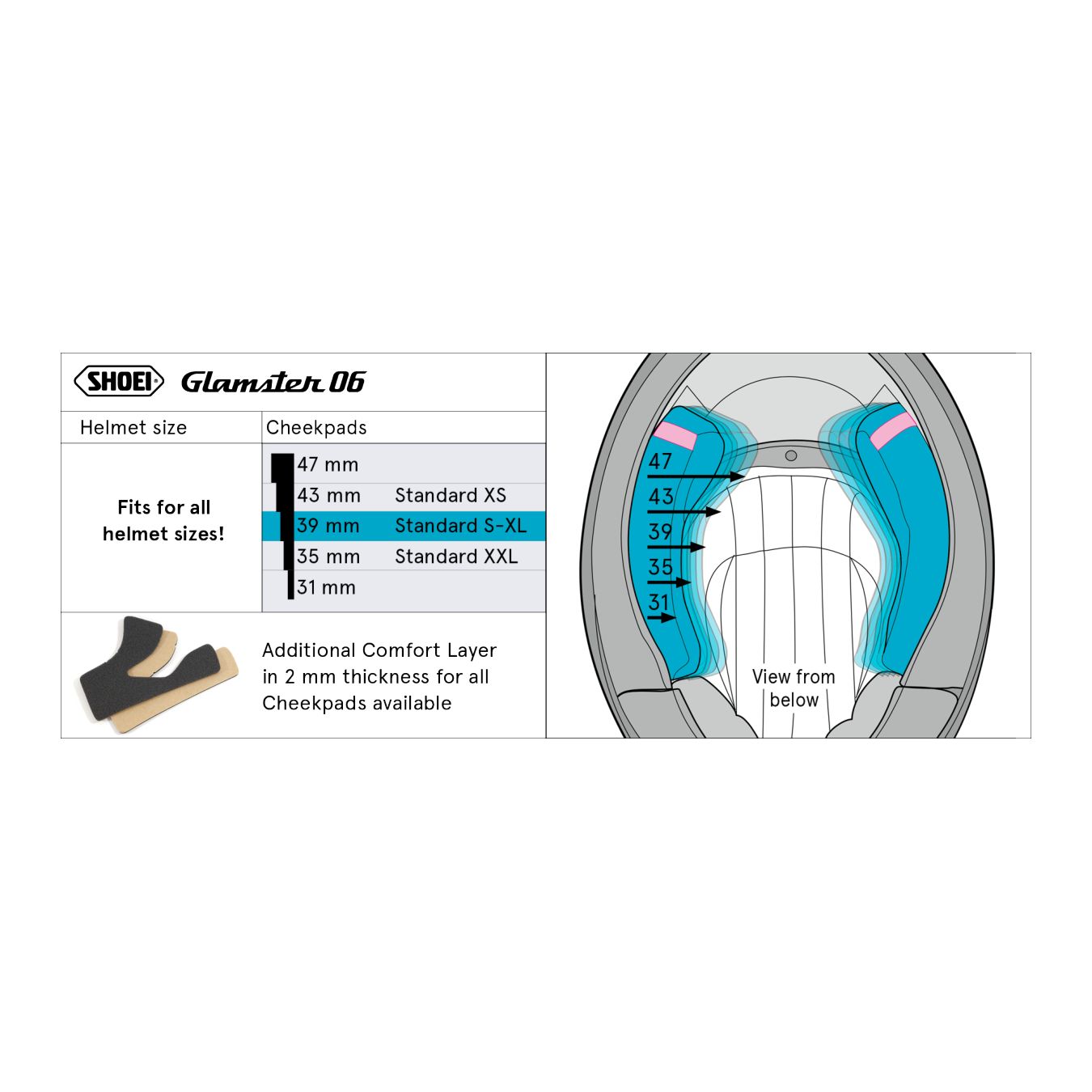 Shoei Glamster Guanciali  43 (standard Xs)