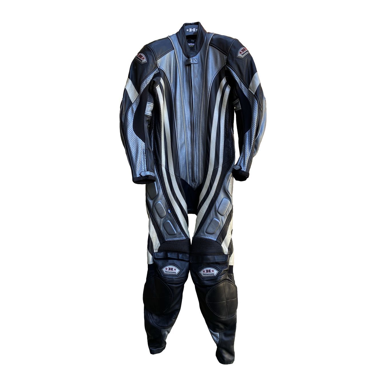 El traje de Halvarssons en piel de vaca de primera elección, es un traje de una sola pieza con muchas áreas perforadas.