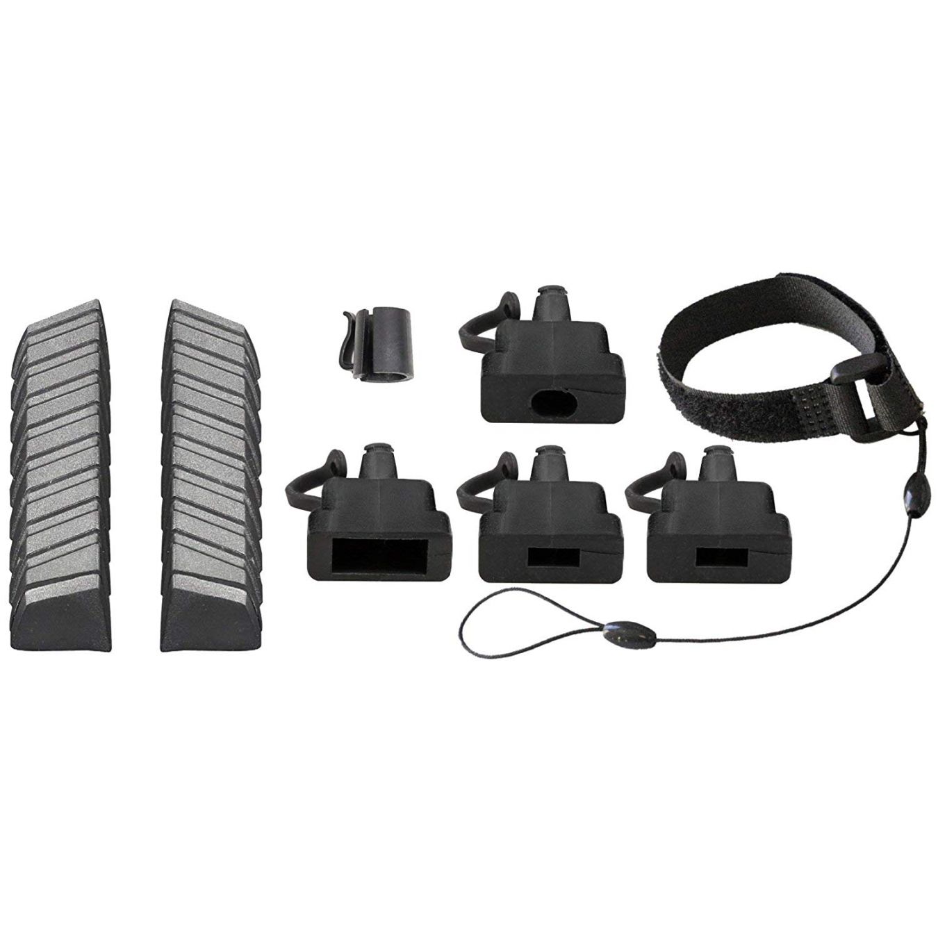 Pièces de rechange pour le support Pro Case. Comprend des composants en caoutchouc et en plastique, une paire de charnières, un capuchon, un remplissage de connecteur Lightning, USB 3.0-1, micro USB Note4 et Galaxy S6, bande de sécurité