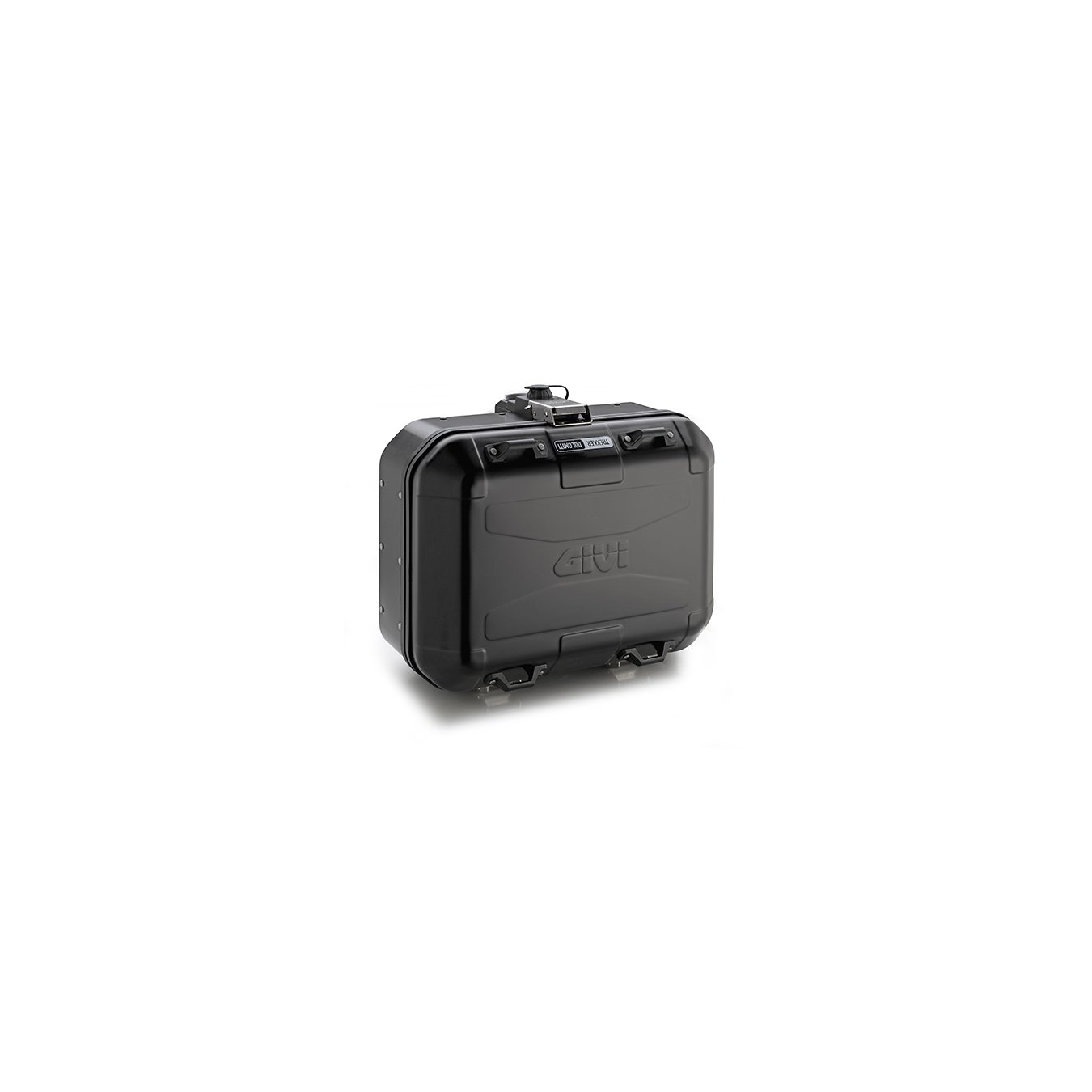 Valise MONOKEY® Trekker Dolomiti en aluminium peint en noir, 30 lt. Peut être utilisé à la fois comme top case (compatible avec toutes les plaques MONOKEY®) et comme boîtier latéral (compatible avec les cadres latéraux PL_ _ _ et PLR_ _ _)