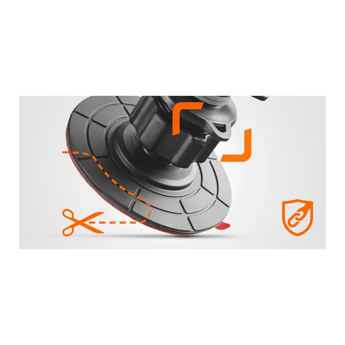 La sfera permette al porta telefono di essere completamente orientabile, consentendone l’utilizzo e la visualizzazione sia in verticale che orizzontale. La ghiera consente di bloccare la testa una volta individuata l’angolazione ottimale.