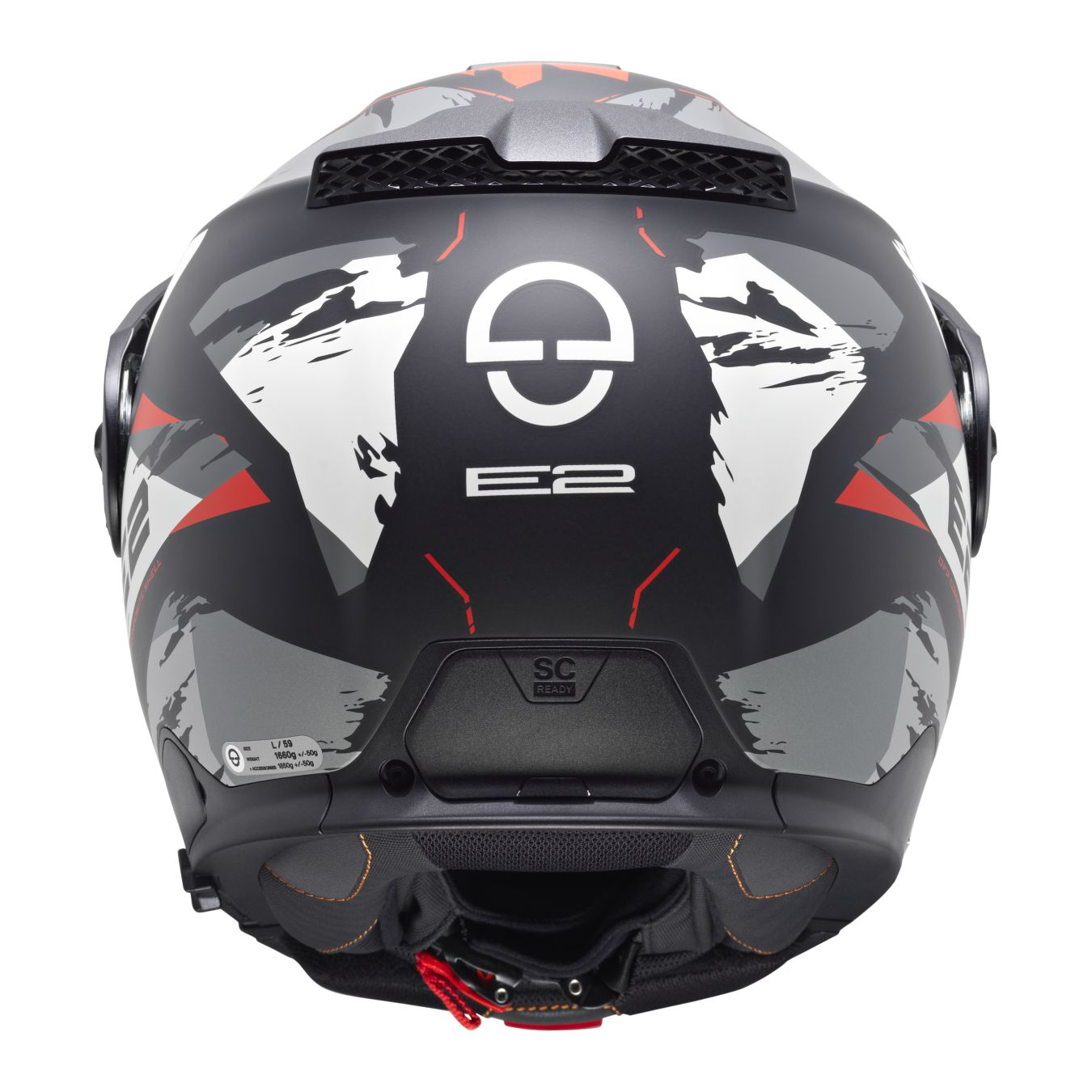 Come tutta la gamma SCHUBERTH, anche E2 beneficia del sistema Anti-Roll-Off collegato ai cinghioli riposizionati più avanti rispetto all'alloggiamento tradizione, per garantire un maggiore comfort nella zona della gola.