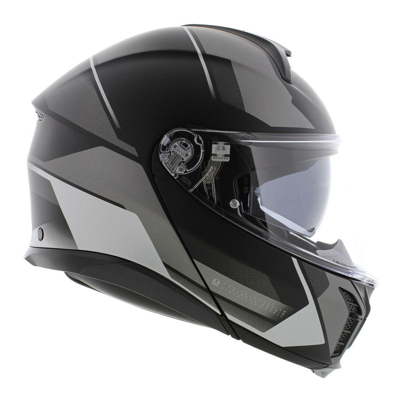 L’aerodinamica del casco è ottimizzata anche in configurazione aperta. AGV Tourmodular può essere utilizzato con la mentoniera alzata anche in movimento in totale sicurezza, superando gli standard richiesti dalla specifica omologazione P/J.