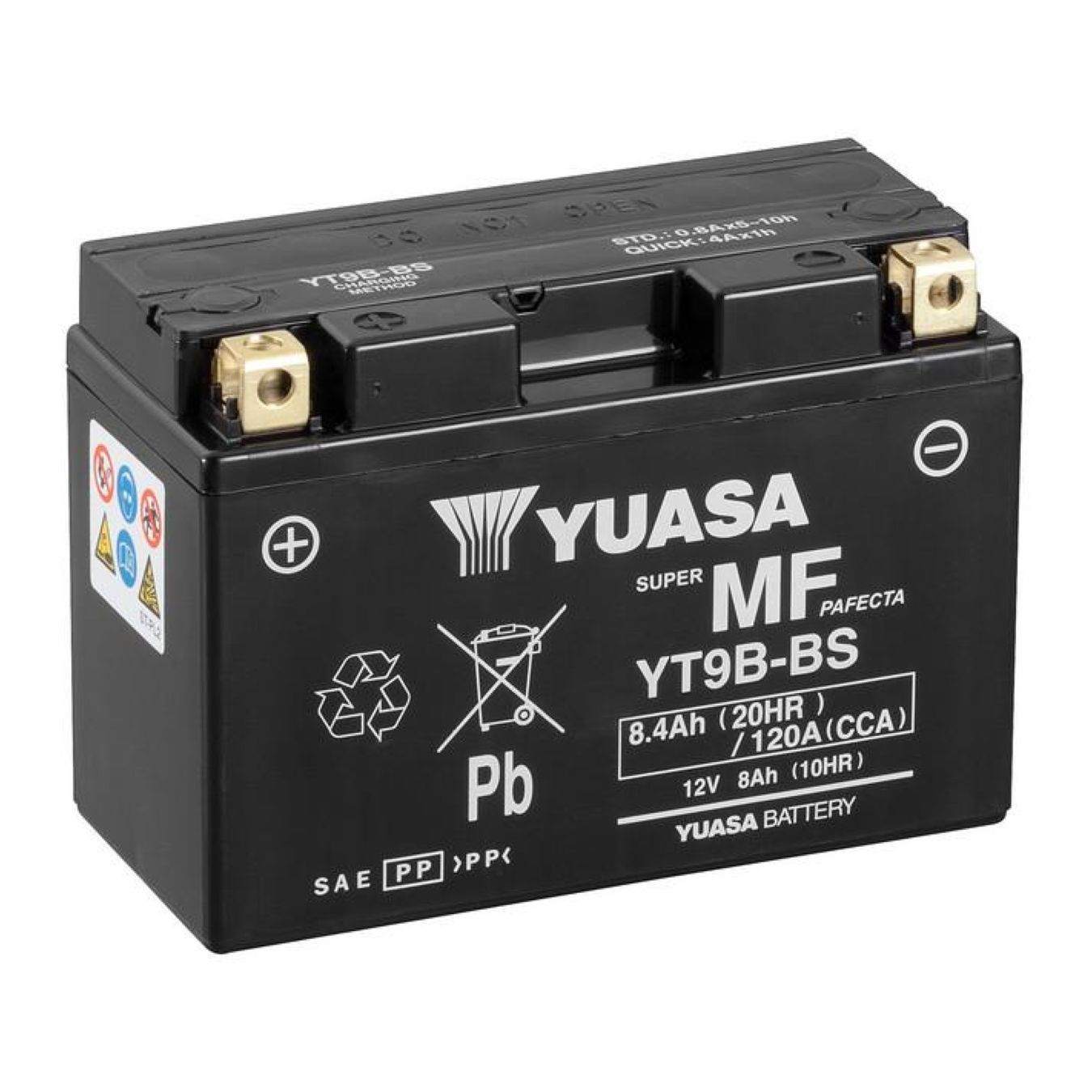 BATTERIA YUASA YT9B-BS o YT9B (dipende dalla produzione), 12V 8.4 Ah, ideale per moto e scooter.