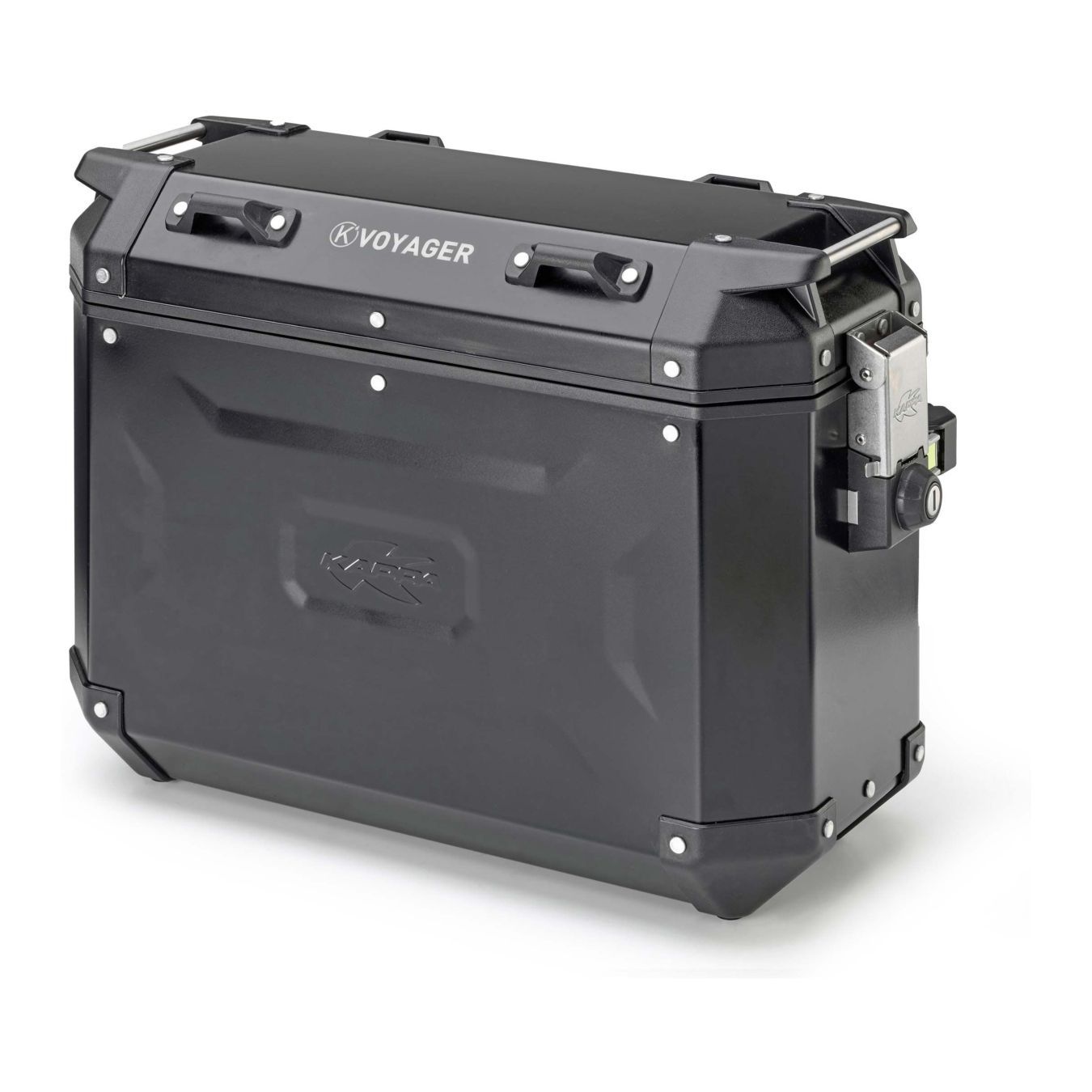 Le valigie laterali KAPPA K’VOYAGER offrono un design robusto e funzionale, realizzate in alluminio verniciato nero, con una capienza di 37 litri ciascuna.