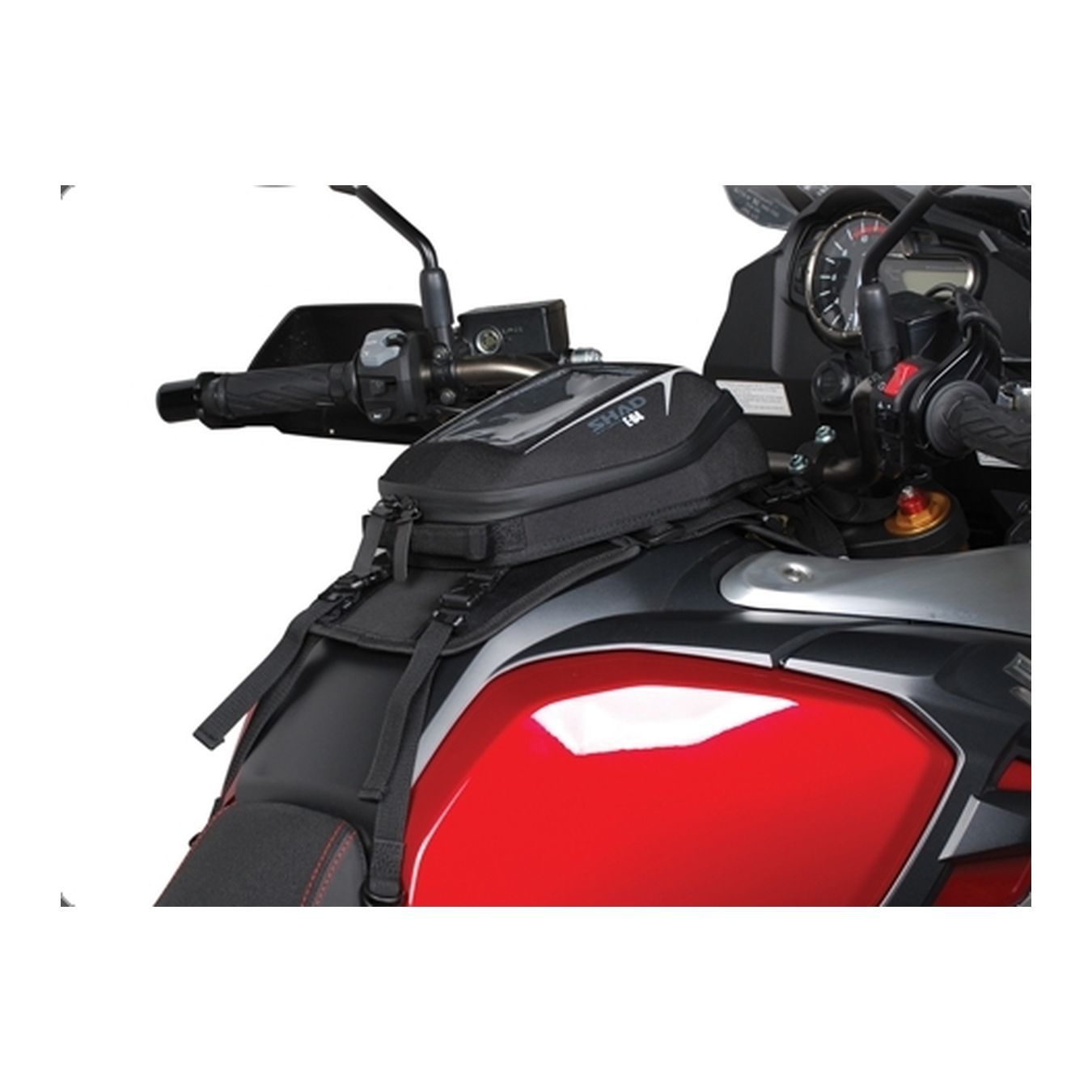 Con diplay cristallo touch e fissaggio alla moto per mezzo di una base di serbatoio universale.