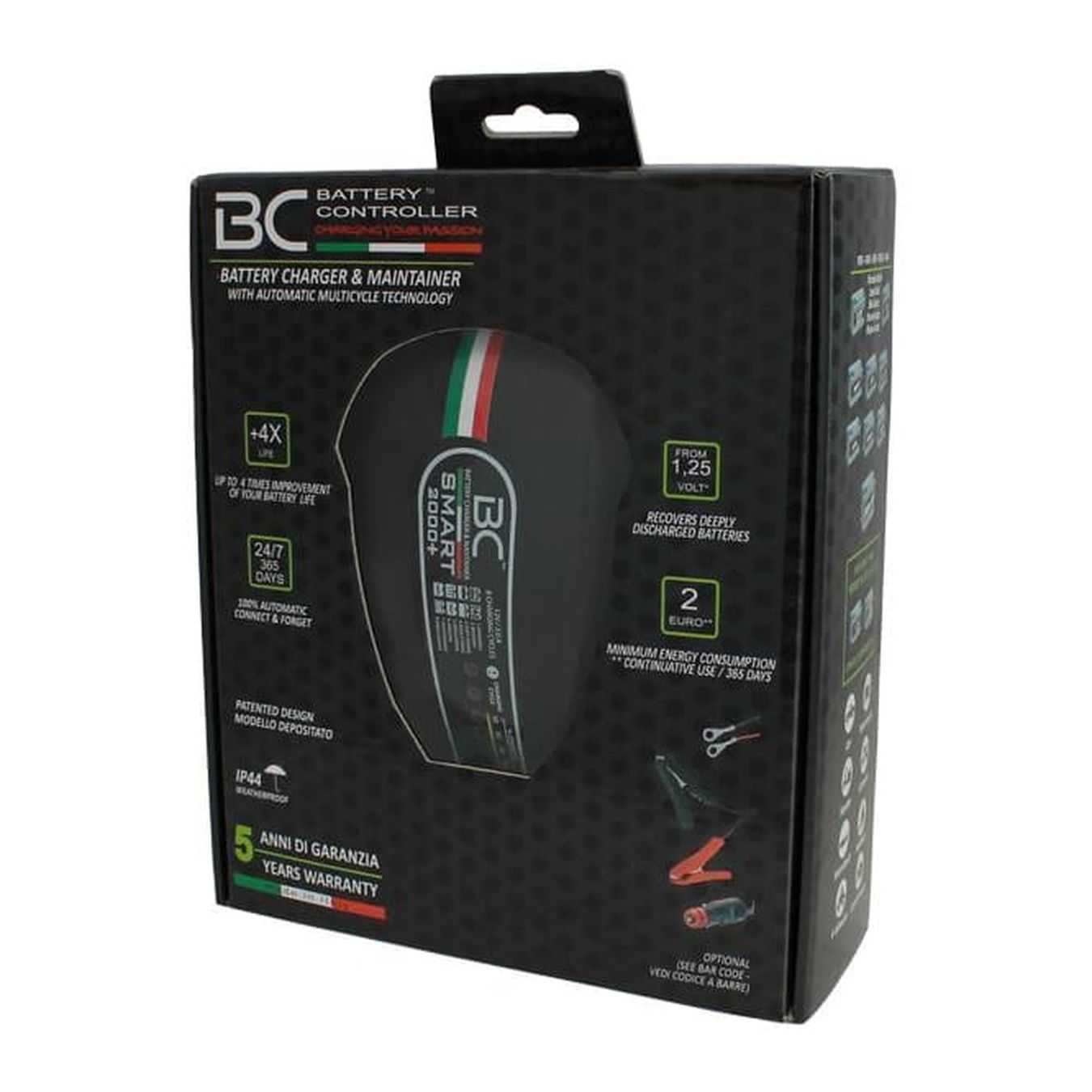 Tutti i caricabatteria/mantenitori della gamma BC Battery Controller sono interamente prodotti in Italia e quindi 100% Made in Italy, di ultima generazione e tra i più sicuri ed avanzati sul mercato. Eseguono in maniera completamente automatica 8 cicli di carica e progettati per un perfetto recupero , carica, desolfatazione nonché per il mantenimento a lunghissimo termine di batterie di avviamento presenti su automobili, motocicli, scooter, camper, trattori, veicoli da giardinaggio . La tecnologia di ricarica e mantenimento BC è ideale anche per batterie stazionarie “degli antifurti domestici” . Si possono infatti lasciare collegati 365 giorni all’anno e comportano un consumo in tal caso di massimo 2 euro di energia elettrica in caso di uso continuativo.