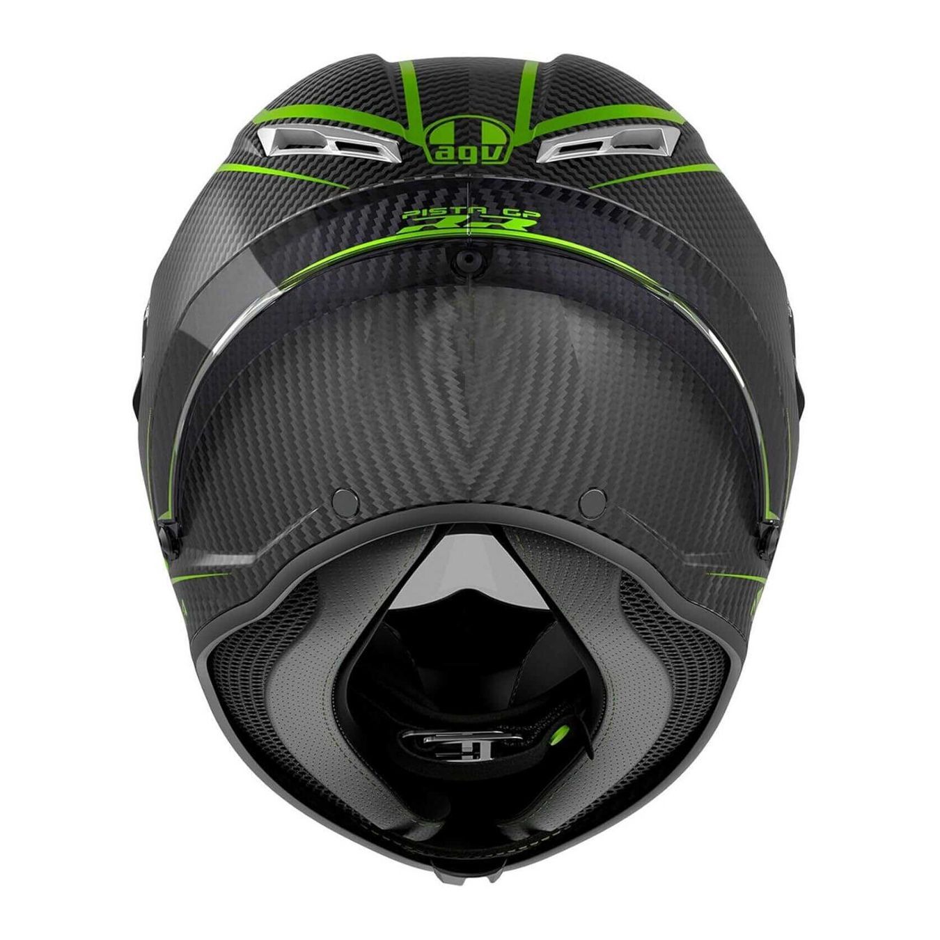 Ogni dettaglio è pensato per la performance assoluta. La calotta in Extreme Carbon 100% fibra di carbonio garantisce una leggerezza estrema, per non sentire mai la fatica di indossarlo. Le sue forme e le prese d’aria in metallo sono studiate in galleria del vento e testate dagli atleti AGV per avere la migliore penetrazione aerodinamica e la massima stabilità alle alte velocità, anche grazie all’innovativo profilo del PRO Spoiler posteriore. La visiera Ultravision di classe ottica 1 è parte integrante della protezione grazie ad uno spessore di fino a 5mm e consente una visione panoramica di 190°, e una visuale verticale di 85°. Significa vedere la pista, gli avversari e gli ostacoli più nitidamente, prima di chiunque altro. Anche in posizione racing in carena.