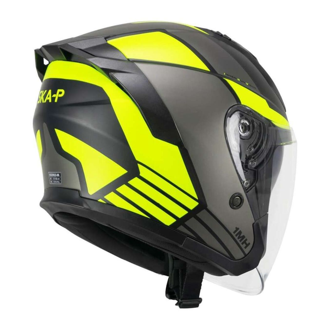 Casco jet dalle linee aggressive con spoiler posteriore. Dotato di visiera interna parasole a scomparsa e visiera esterna basculante dal campo visivo molto amplio. Gli interni termoformati estraibili e lavabili, il sistema di aerazione interna, anello antifurto al cinturino e fibbia micrometrica ne completano la dotazione.