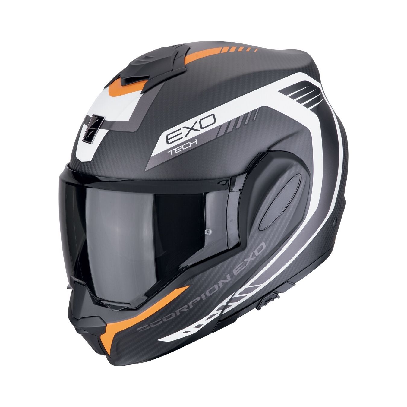 Il capolavoro flip-back di Scorpion è ora dotato di una calotta in composito di carbonio. EXO-TECH EVO Carbon è un casco apribile leggero con un funzionamento semplice, caratteristiche pratiche e un blocco della mentoniera per una sicurezza ottimale. Mantiene il design piccolo, sottile e vero della calotta integrale, ma con l'eleganza della superficie in fibra di carbonio di alta qualità, offre uno stile eccezionale. EXO-TECH EVO Carbon viene fornito con un supporto EXO-COM che si abbina perfettamente al casco e ai caschi di design EXO-COM.