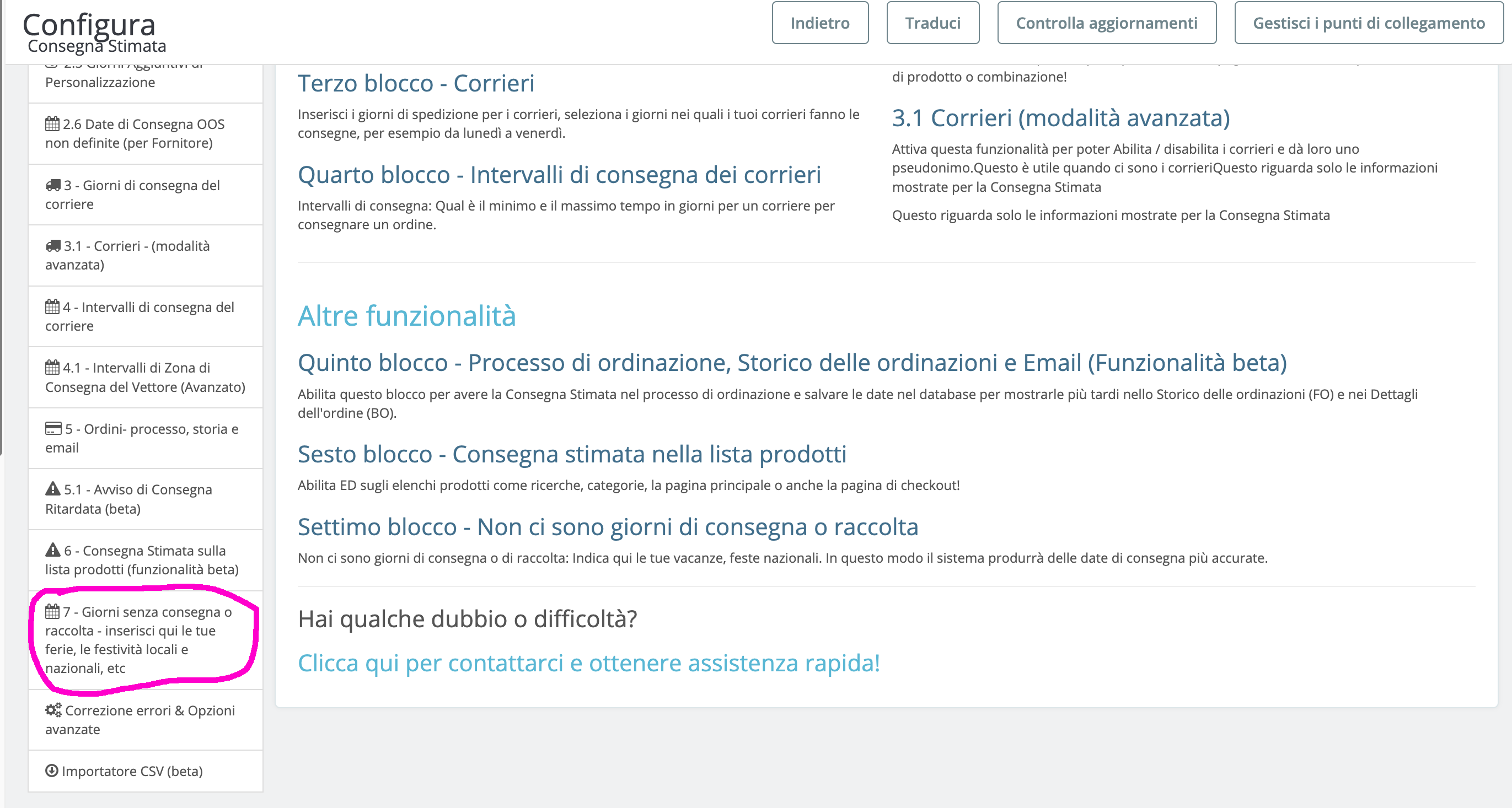5. Campo Data di Inizio: inserire la data di inizio, cioè in cui non si effettuerà nessuna spedizione o ritiro da parte del corriere. Selezionarla dal calendario, l'orario è in automatico 00:00.