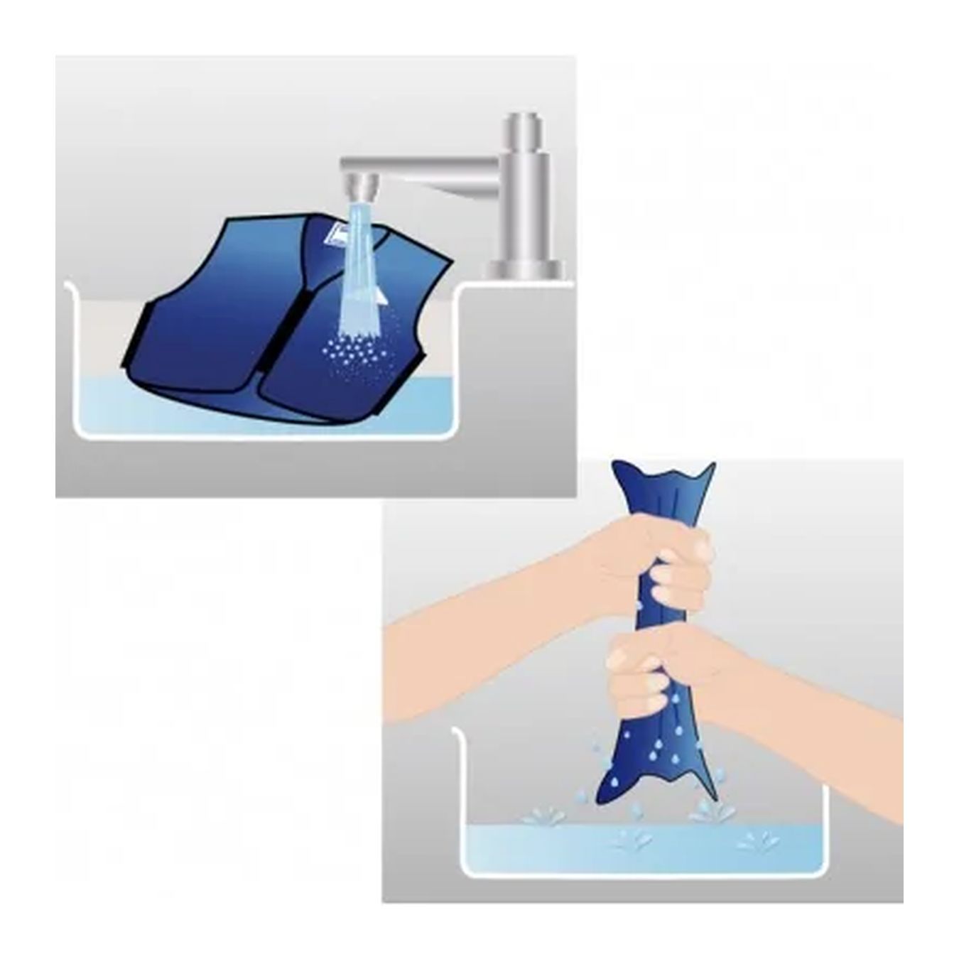 Questo indumento ha un utilizzo davvero semplice. Vi basterà immergere il gilet nell'acqua fredda per uno o due minuti, strizzarlo dolcemente e indossarlo. L'acqua viene trattenuta dallo speciale tessuto senza che bagni i vostri vestiti e l'effetto di refrigerio è immediato. Potrà essere "ricaricato" anche in viaggio im quanto basta solo un poco di acqua.