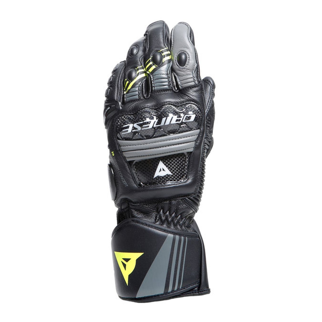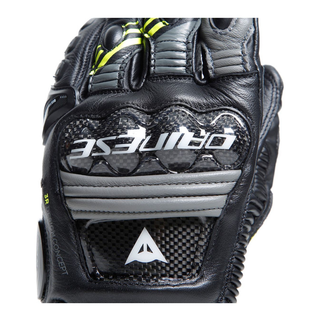 • Inserti compositi in fibra di carbonio su nocche e dorso della mano