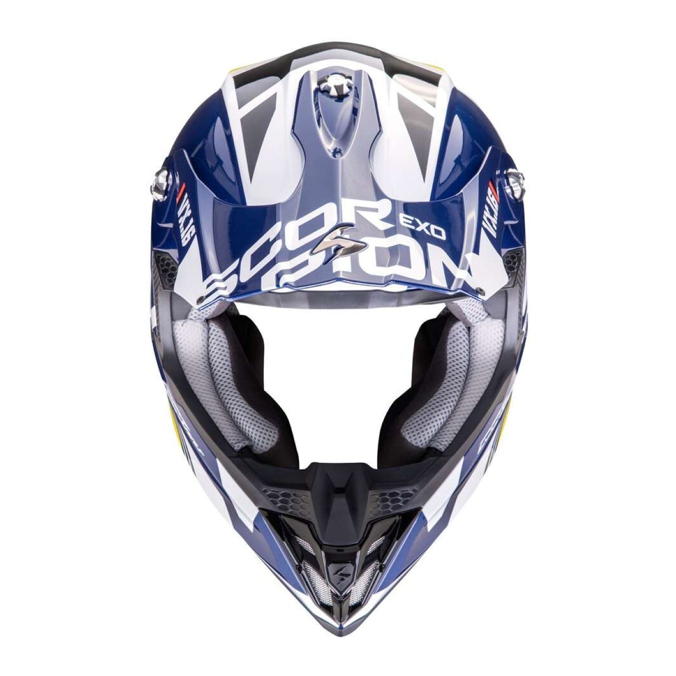 Casco Scorpion Vx-16 Evo Air Analog Bianco Blu Giallo