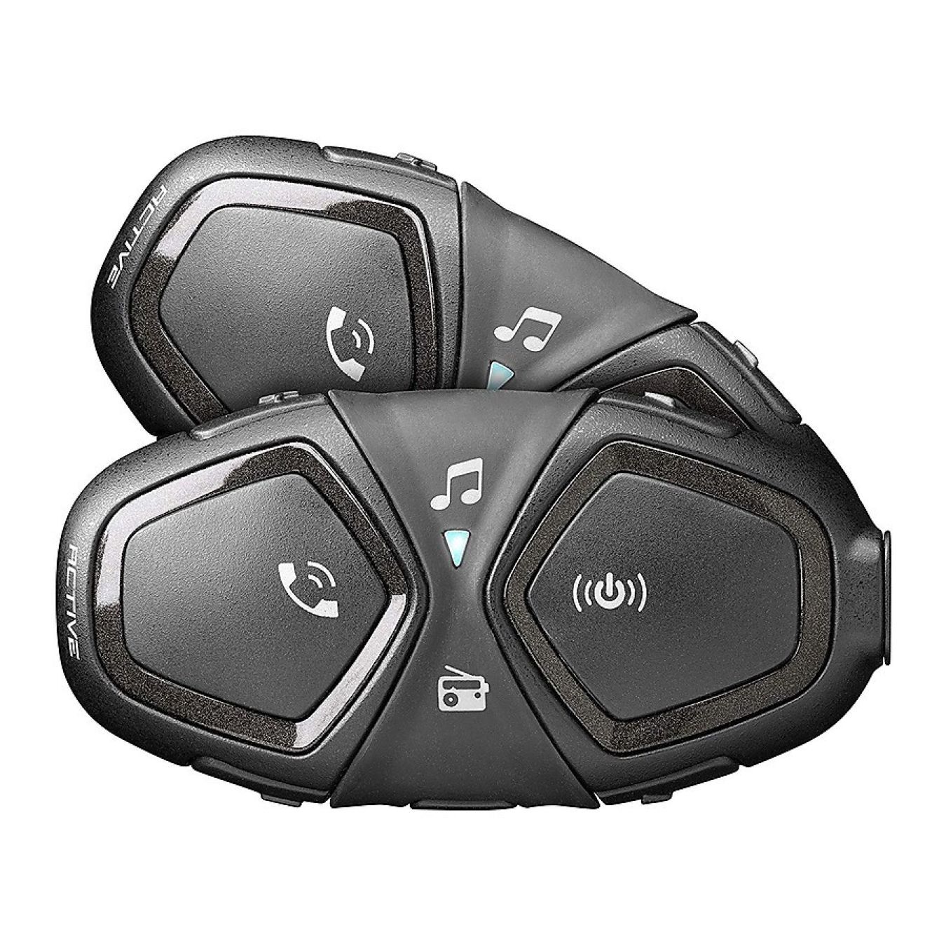 Con Interphone Active comunichi con 4 motociclisti ad una distanza di 1 Km, navigando col GPS e ascoltando la musica o una delle 8 stazioni radio memorizzate.