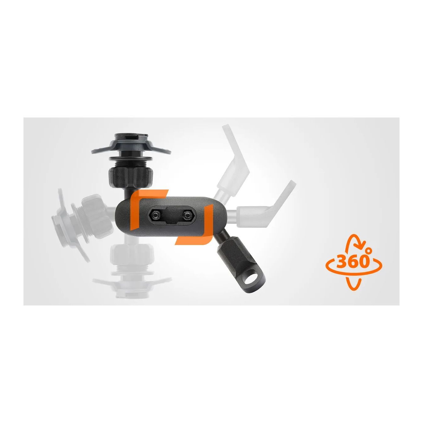 La sfera permette al porta telefono di essere completamente orientabile, consentendone l’utilizzo e la visualizzazione sia in verticale che orizzontale. La ghiera consente di bloccare la testa una volta individuata l’angolazione ottimale.
