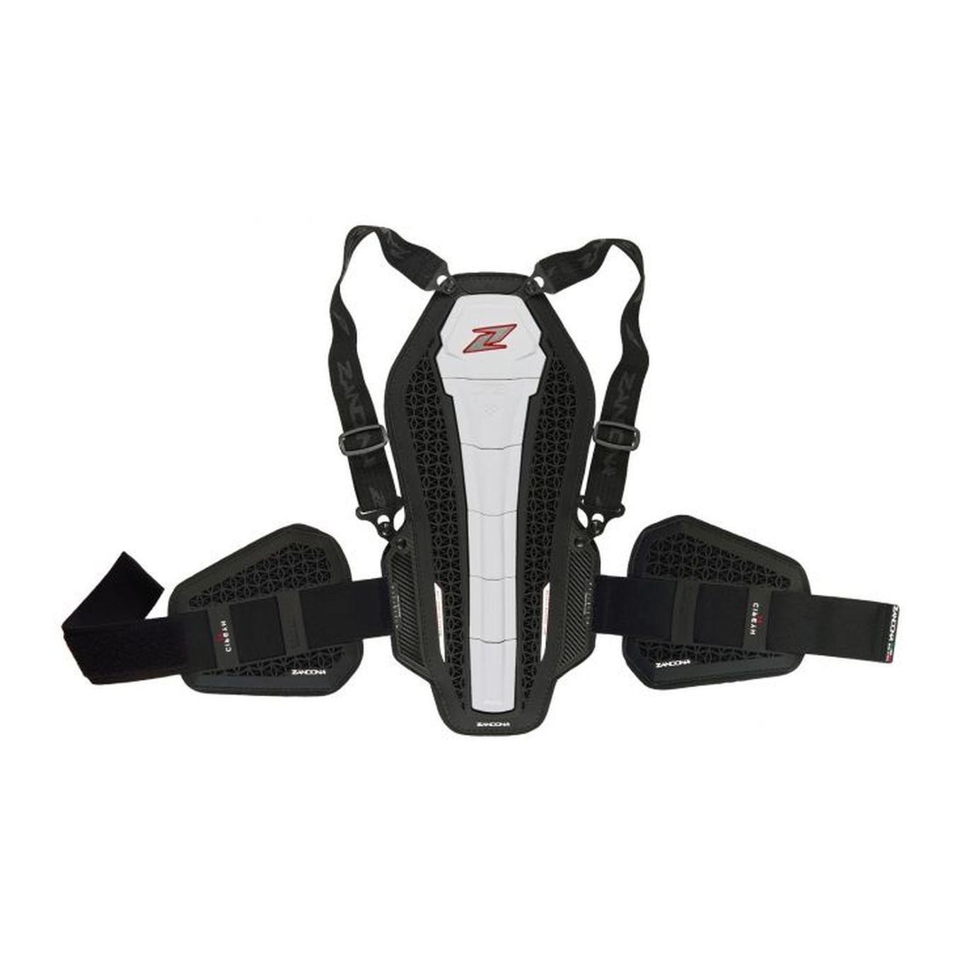 - corpo centrale con scocche in plastica per proteggere la colonna vertebrale;