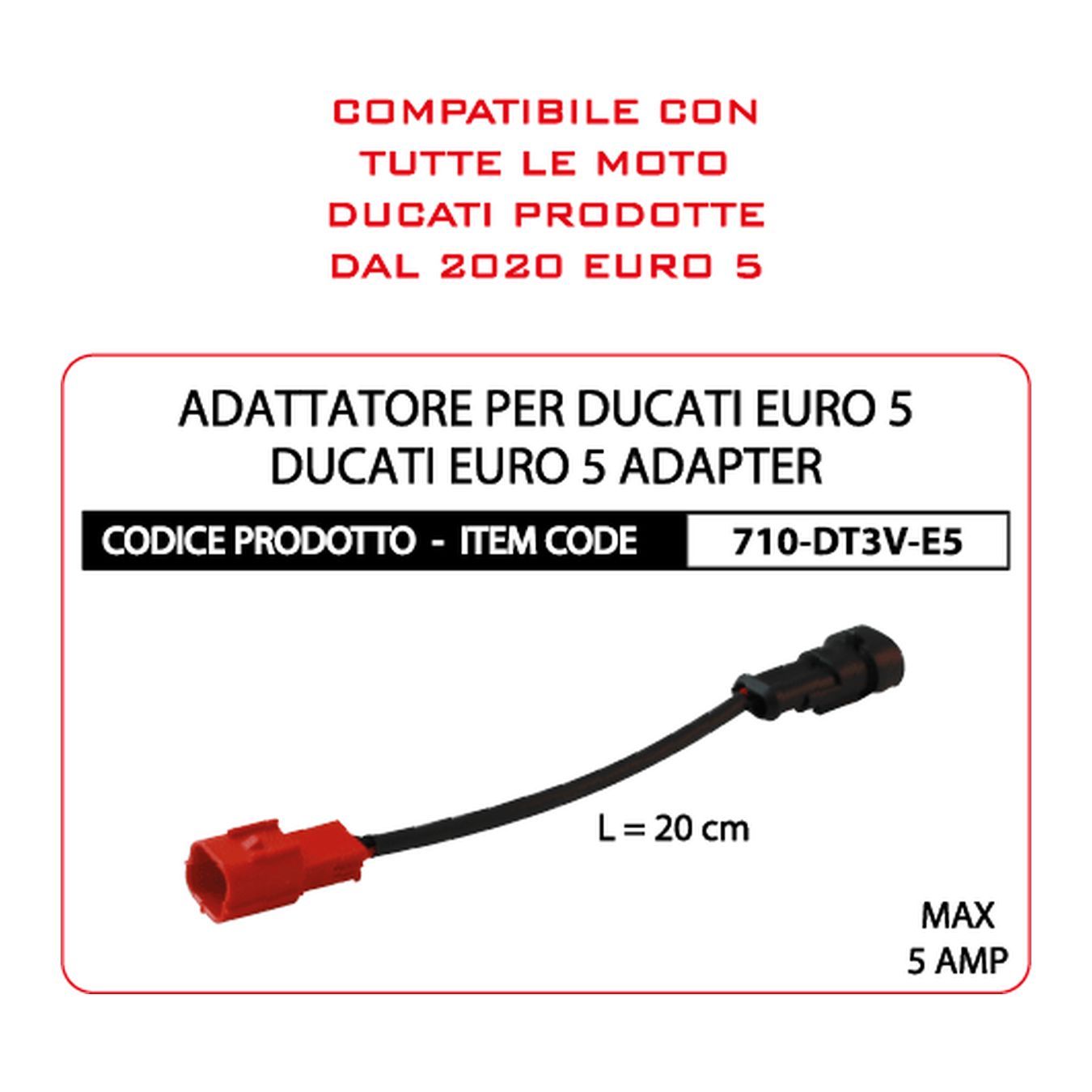 L'accessorio ha una lunghezza totale di 20 cm ed è perfettamente compatibile con i modelli di moto Ducati dotati di presa DDA.