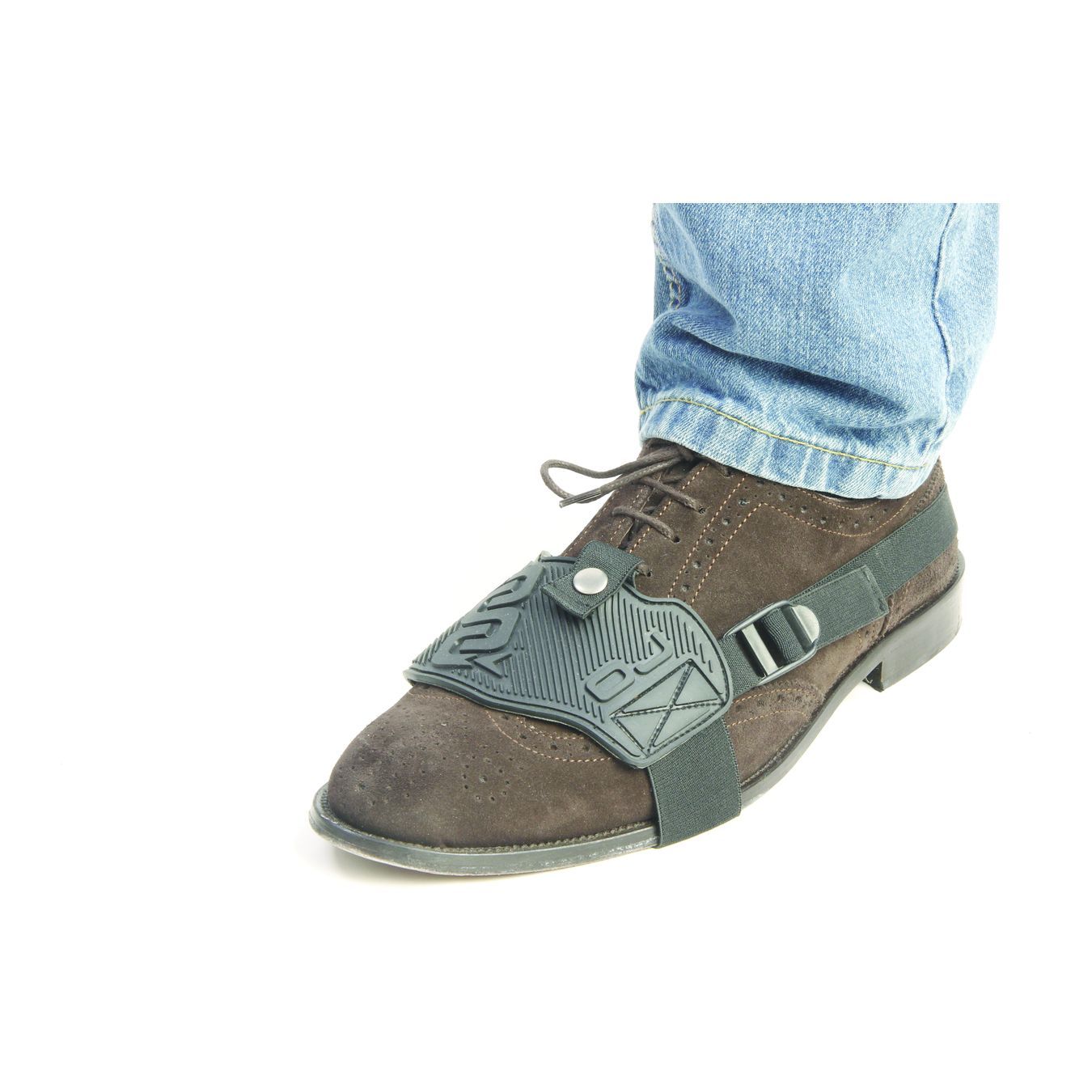 OJ Stop salvascarpa in gomma da montare direttamente sulla scarpa con elastico regolabile e aggancio di sicurezza a bottone